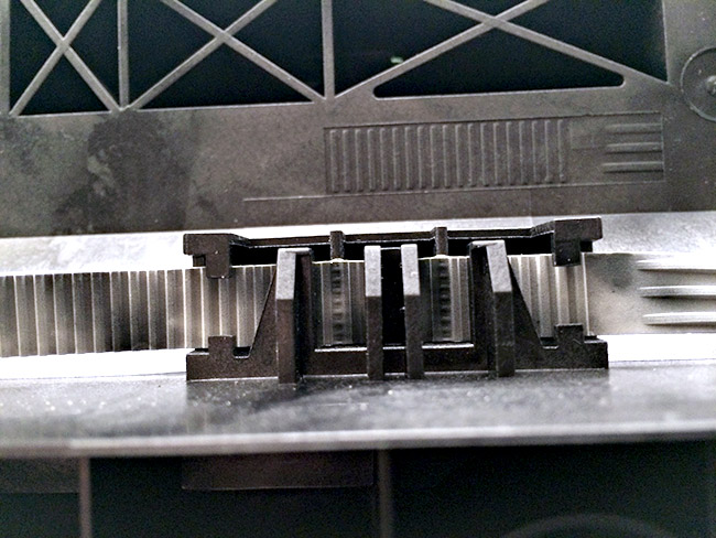 Parts easily snap out of the printer, such as the belt tensioning pulley