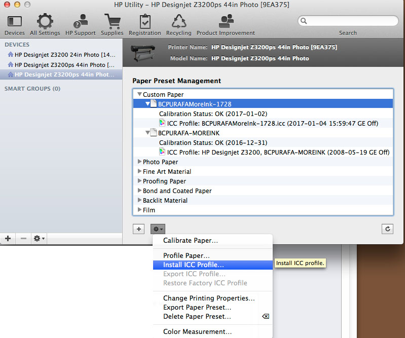PROFILES FOR HP Z3200 PRINTERS